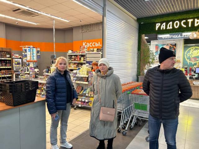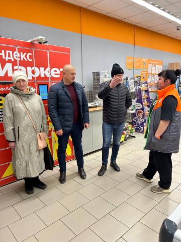 Председатель Совета депутатов городского округа Фрязино Елена Романова, депутат Алексей Коночев и начальник отдела потребительского рынка, сферы услуг и рекламы Дмитрий Мягков совместно с заявителем провели проверку торговых объектов. В ходе рейда была проведена консультативно-разъяснительная беседа по поводу строгого соблюдения указанного закона.
